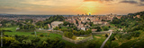 Aerial sunset panorama of Bergamo in Lombardia Italy, with dramatic colorful sky
