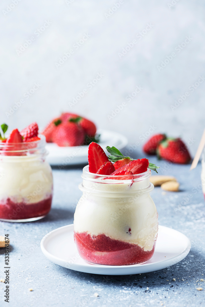 Italian dessert tiramisu with strawberry