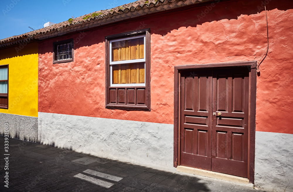 Colorful houses by a street in San Cristobal de La Laguna old town, Tenerife.
