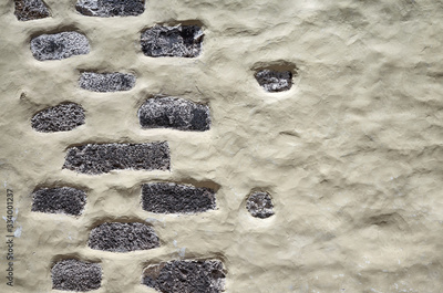 Old wall with porous stones.