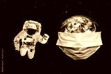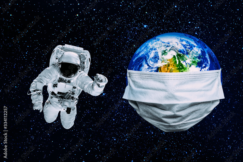The whole earth is quarantined, the earth is wearing a mask Coronavirus and Air pollution pm2.5 concept. COVID-19 Elements of this image furnished by NASA