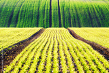 Green wheat rows and waves of the agricultural fields of South Moravia, Czech Republic. Can be used like nature background or texture