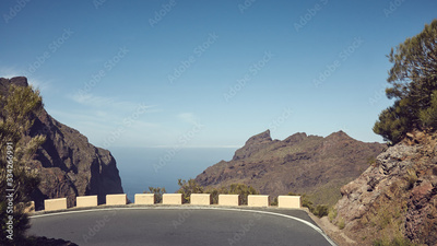 Retro toned picture of a senic mountain road, Tenerife, Spain.