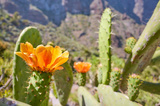 Close up picture of flowering Prickly Pear Cactus (Opuntia), selective focus, Tenerife, Spain.