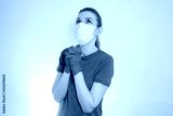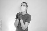 Woman in medical mask. Girl in rubber gloves. Virus protection.