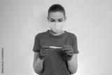 Young woman wearing medical face mask. High temperature in women. Signs of the virus.