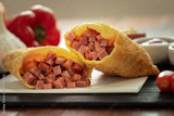 Pastel frito da culinária Brasileira com recheio de calabresa e queijo