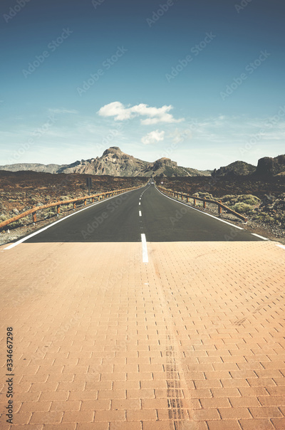 Scenic road in Teide National Park, color toning applied, Tenerife, Spain.
