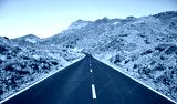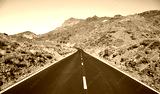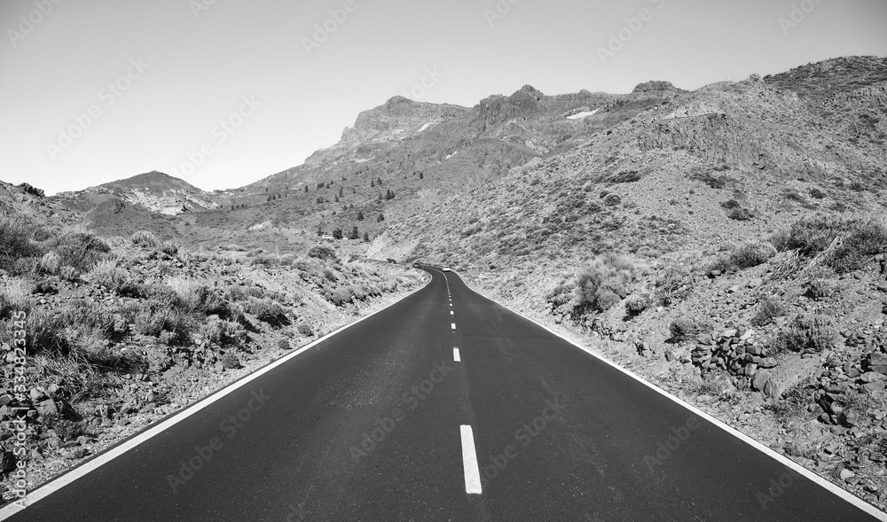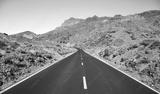 Black and white picture of a scenic road in Teide National Park, Tenerife, Spain.