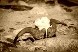 Muskox's skull (Ovibos moschatus) in Greenland tundra