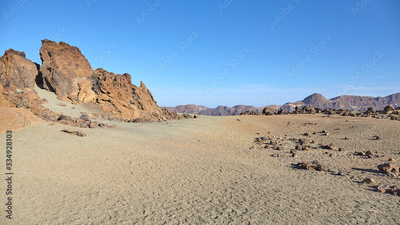 Deserted landscape of Teide Volcano base, Teide National Park, Tenerife, Spain.