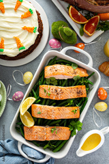 Roasted salmon and green beans for Easter brunch