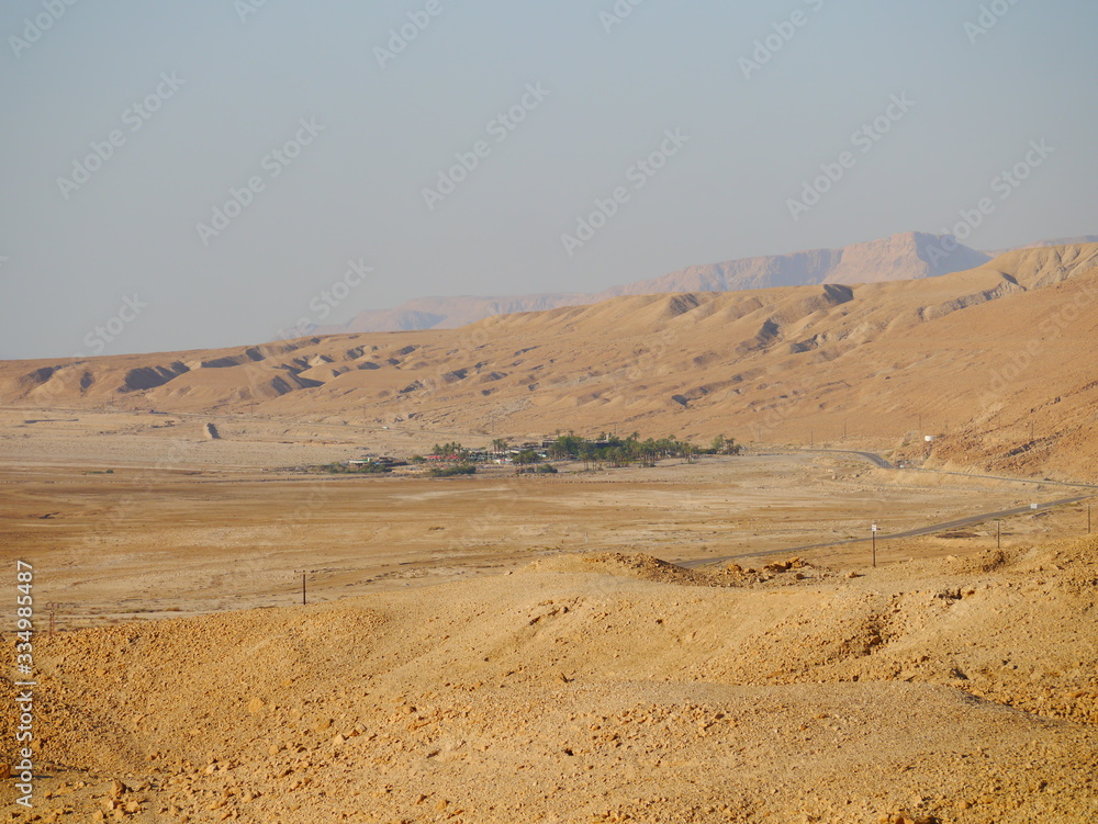 aerial view on oasis of Ein Gedi in the Negev desert, dead sea area, Israel, Middle East