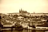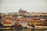 The panorama of Prazhsky Hrad in the center of Prague. Panoramic view on Old Town , Prague Castle Saint Vitus Cathedral, Vltava river. Prague, Czech Republic . European travel.