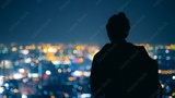 Silhouette Man looking to beautiful color of city night light from top of building at bangkok Thailand. Back view of young man.