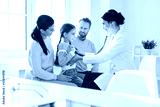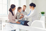 Happy family on a visit to the doctor in the office of a doctor.