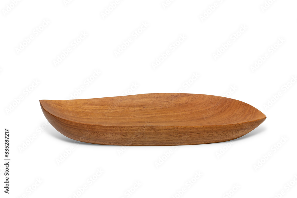 Empty Wooden plates or plates wood for food shaped like leaves with an oval shape.Serving tray isolated on white background