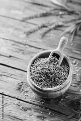Lavender flowers in a wooden bowl