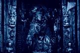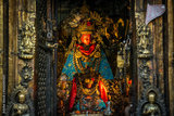 The beautiful ancient Buddha statue with red masked in Buddhist shrine in Kathmandu the capital cities of Nepal.