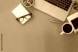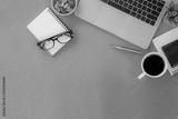 Top view desk,Modern office desk Workspace with laptop computer office supplies for Work from home concept.