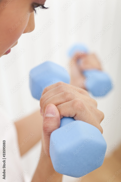 Beautiful Young Asian Chinese Woman Lifting Weights At Gym