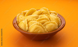 Filled dumplings, homemade russian vareniki, pelmeni in bowl