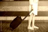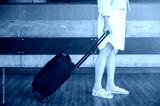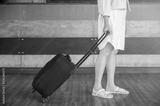 Cropped shot of young woman with suitcase walking to the hotel lobby for check-in her room. Conceptual of tourist when arrival at hotel.