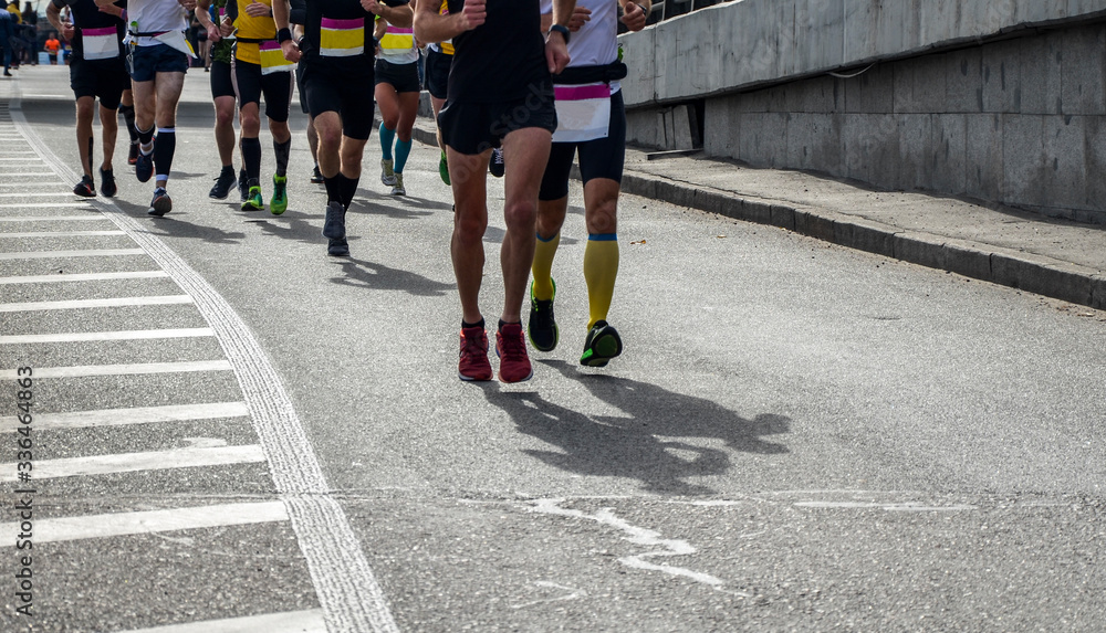 Marathon race, runners feet on road. Running and jogging are great fitness exercises for staying healthy