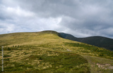 Landscape of Carpathian mountain range. Clouds over green mountain hills. Beauty of nature. Svydovets ridge. Ukraine