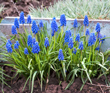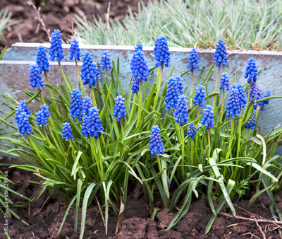 Muscari flowers closeup, beautiful summer on flowerbed in garden