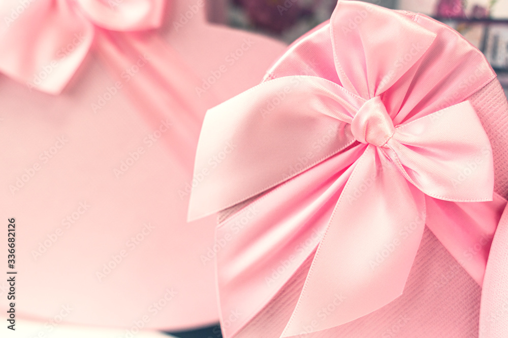 pink boxes for gifts in the form of hearts. romantic holiday packaging. close-up, copy space