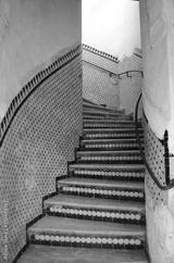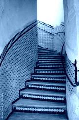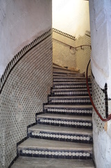 Beautiful staircase with mosaic tiles at Fes old town.