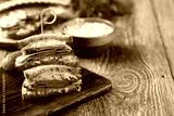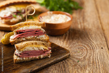 Ruben sandwich. New York sandwich with pastrami, sauce 1000 islands and sauerkraut.