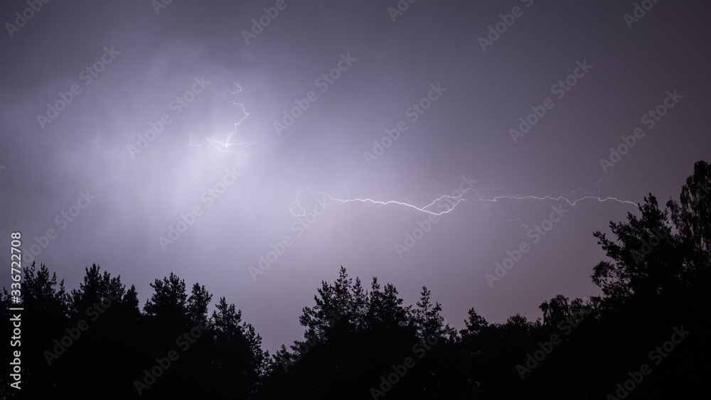 Burza z piorunami nad lasem