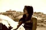 Closeup portrait of young brunette woman on the Nile