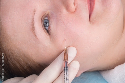 cosmetology, injection of beauty to a woman, in the front part, close-up
