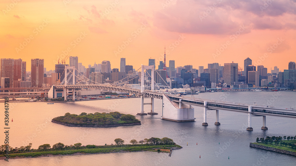 Tokyo. Cityscape image of Tokyo, Japan with Rainbow Bridge during sunset.