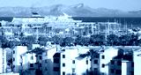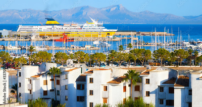 Panoramic view of Alcudia resort, main tourist center in the north of Mallorca, Spain.
