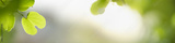 Close up beautiful nature view green leaf on blurred greenery background under sunlight with bokeh and copy space using as background natural plants landscape, ecology cover concept.