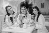close up photo of young beautiful women drinking tea in the fito bar of a spa salon