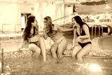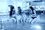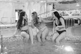 close up photo of smiling females friends relaxing in hot swimming pool in a spa salon