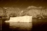 Greenland landscape with beautiful coloured rocks and iceberg.