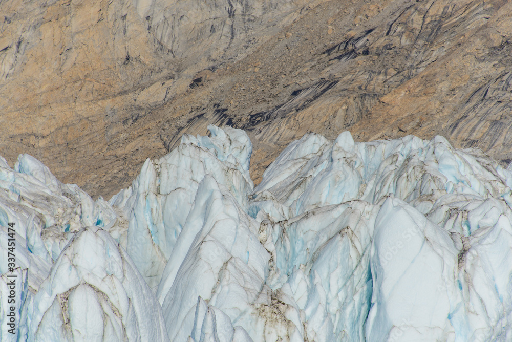 Greenland landscape with beautiful coloured rocks and iceberg.