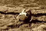 Muskox's skull (Ovibos moschatus) in Greenland tundra
