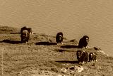 Muskox (Ovibos moschatus) in Greenland tundra