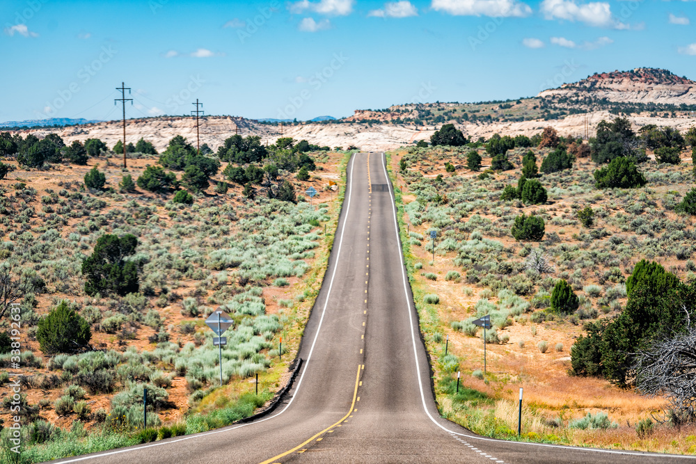Steep dramatic hill on highway 12 scenic road byway in Calf Creek Recreational Area and Grand Staircase Escalante National Monument in Utah summer