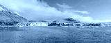 Landscape with glacier in Svalbard at summer time. Sunny weather.
