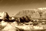 Landscape with glacier in Svalbard at summer time. Sunny weather.