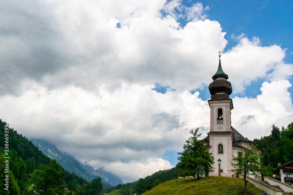 trees, national park, hiking, alps, scenic, landscape, alpine, bavaria, chapel, nature, maria gern, watzmann, europe, landmark, tourism, germany, church, forest, berchtesgaden, oberbayern, countryside