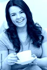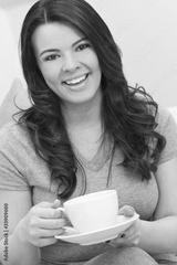 Beautiful Hispanic Latina Woman Drinking Tea or Coffee